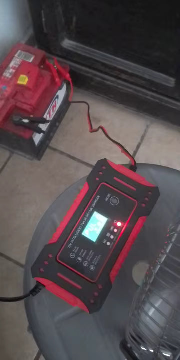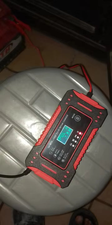 La pantalla LCD muestra en tiempo real el voltaje, corriente y nivel de carga. Cuando llega al 100%, puedes desconectar la batería con total seguridad.